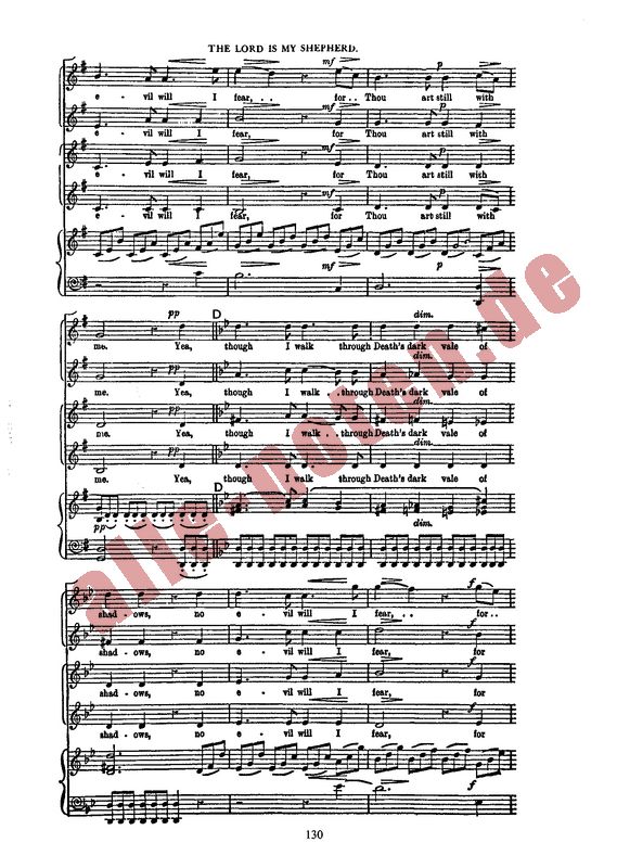 The Lord Is My Shepherd, Psalm 23, scored for female voices SSAA by Franz Schubert. This melody has been made famous as the theme to BBC Television's The Vicar Of Dibley