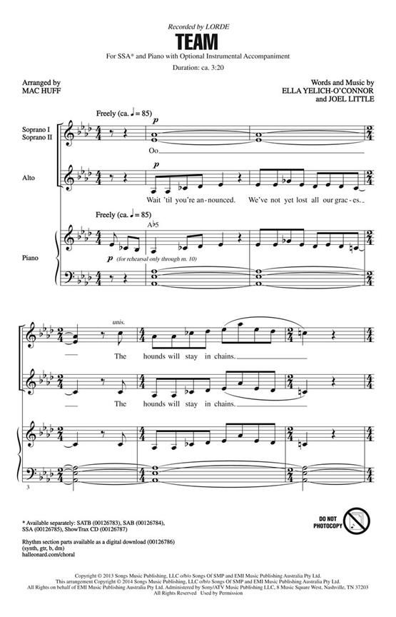 Der Pop-Megahit und Grammy-prämierte Song des Jahres von Lorde ist eine zugängliche und unterhaltsame Einführung in Pop a cappella für jüngere SSA-Chöre!