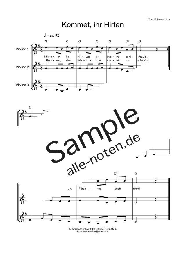 Geigentrio Noten gibt es bei uns im Online-Shop in großer Auswahl zu entdecken. Hier finden Sie Geigentrio Noten in allen Stilrichtungen von allen deutschen und ausländischen Verlagen. Stöbern Sie in unserem umfangreichen Angebot und bestellen Sie hier bei Ihrem renommierten und seit 1969 auf dem Markt etablierten Fachversand für Noten aller Art.