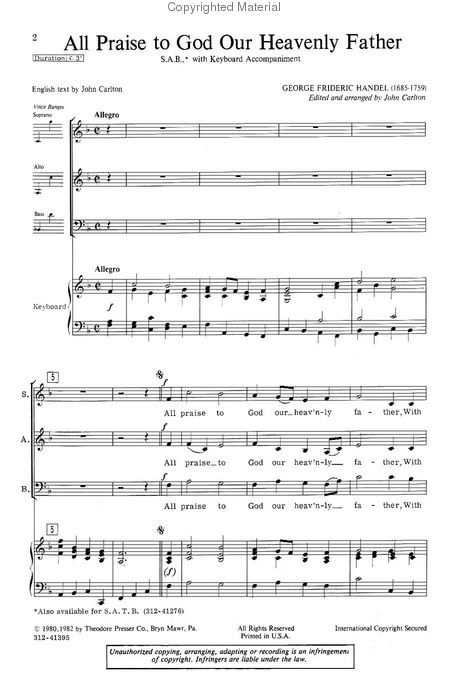 A motet, by Dr. Christopher Tye (with English alternative) for SATB Choir with Organ ad lib, and a short anthem by George Frideric Handel for SATB and accompaniment.