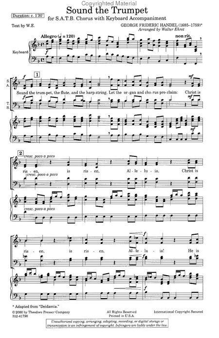 Vocal Score for the Chorus from Samson. For SATB Choir and Keyboard accompaniment.