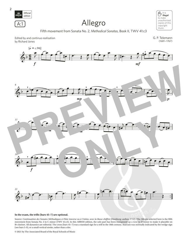 Georg Philipp Telemann Noten für Klarinette finden Sie hier!