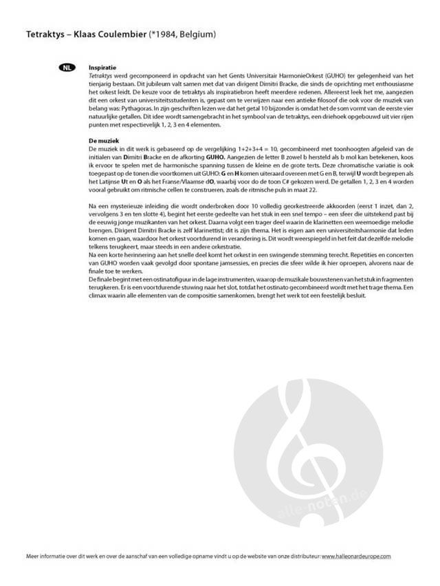 Tetraktys, benannt nach einem mathematischen Konzept von Pythagoras, ist ein festliches und abwechslungsreiches Werk, das anlässlich des zehnjährigen Jubiläums des Ghent University Wind Band komponier...