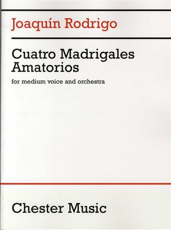 A score with orchestration for two Flutes, two Oboes, Clarinet, Horn, Trumpet, Percussion and Strings. Rodrigo's Cuatro Madrigales Amatorios was written for the soprano Lola Rodriguez Aragon, who gave...