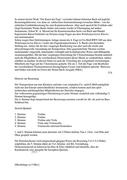Schlussfuge aus 'Die Kunst der Fuge' für Streichquartett bearbeitet und ergänzt von EDUARD MELKUS Bach hat den krönenden Schlusssatz seines kontrapunktischen Meisterwerks bekanntlich unvollendet hinte...