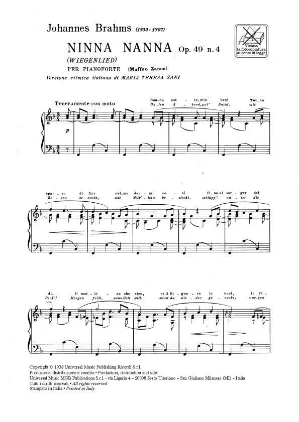 Johannes Brahms Klaviernoten