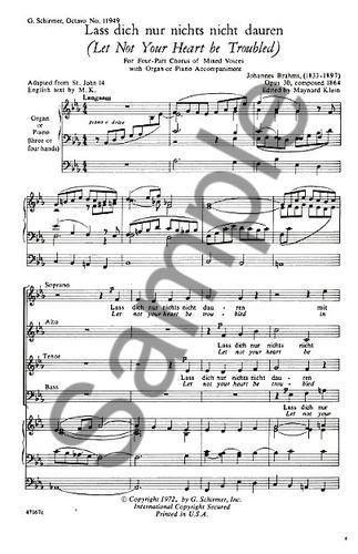 Lass Dich Nur Nichts Dauern or Let Not Your Heart Be Troubled) from The Geistiches Lied is a setting of a text by Paul Flemming for SATB Choir with Organ or Piano accompaniment.