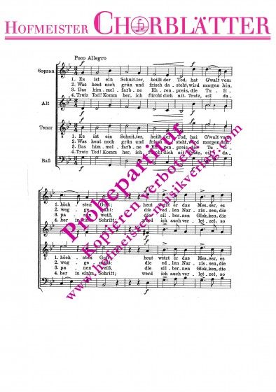 Es ist ein Schnitter, heißt der Tod, auch Der Schnitter Tod oder einfach Schnitterlied genannt, ist ein deutsches Volkslied des 17. Jahrhunderts, dessen Verfasser unbekannt ist. Das Gedicht thematisie...