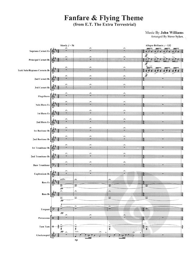 'Fanfare And Flying Theme' From E. T. - The Extra Terrestrial, arranged for Brass Band by Steve Sykes. Music by John Williams. Includes Score and Parts.