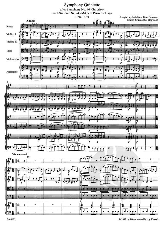 Mit "außergewöhnlichem Sachverstand", so die Zeitgenossen, verfertigte Johann Peter Salomon in London fünfstimmige Bearbeitungen von den 12 Haydnschen Londoner Symphonien für Flöte, Streichquartett un...