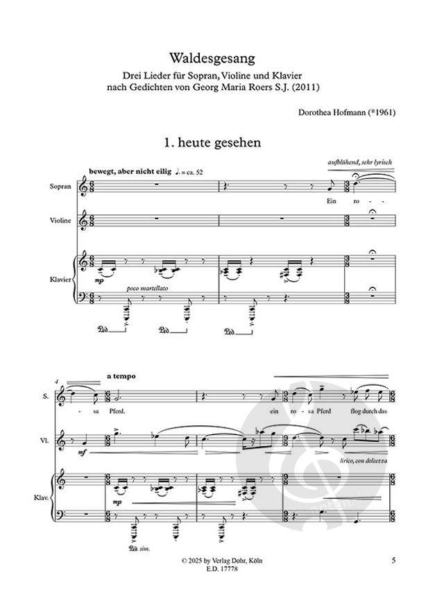 - Gemischter Chor (4-stimmig), 2 Klarinetten, Fagott, 2 Trompeten, Kontrabass und Pauke