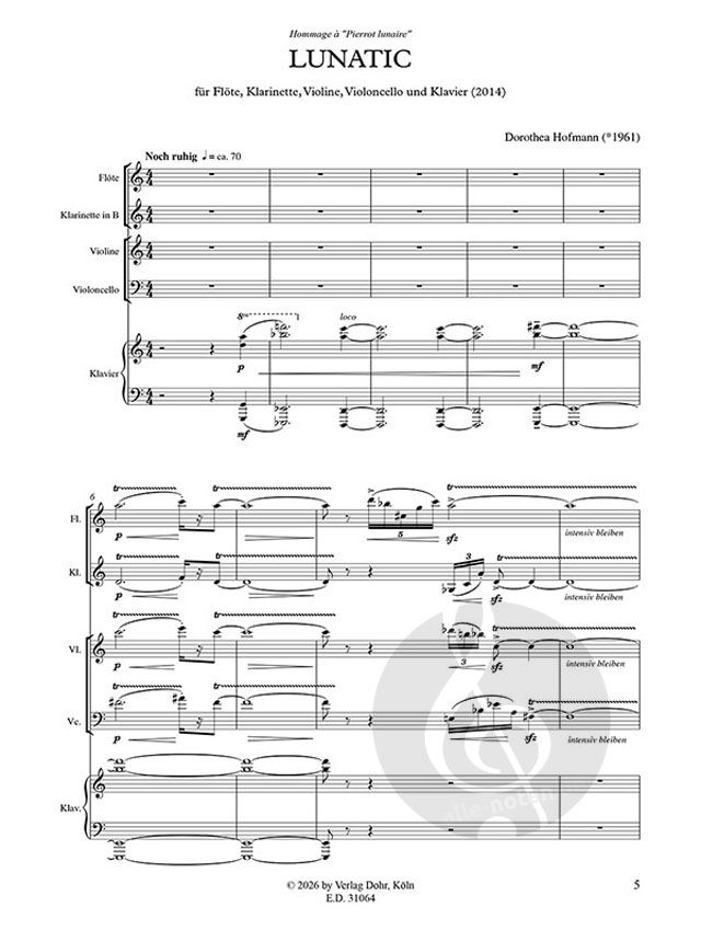 - Querflöte, Klarinette, Violine, Cello und Klavier
