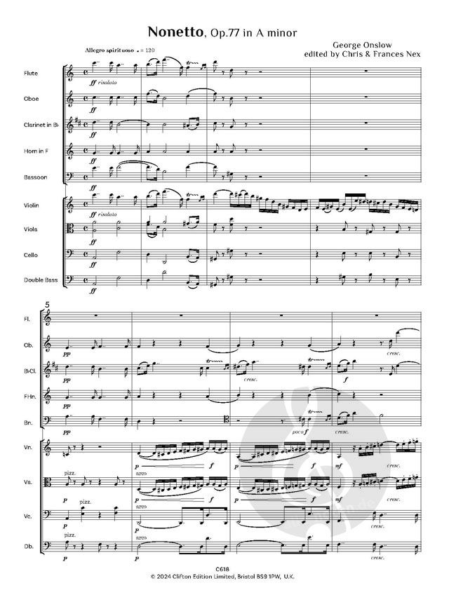 Nonetto, op. 77 in a-Moll ist für Bläserquintett mit Violine, Viola, Cello und Kontrabass komponiert und entspricht denen von Spohr und Lachner. Das Werk ist typisch für den Stil des 19. Jahrhunderts,...