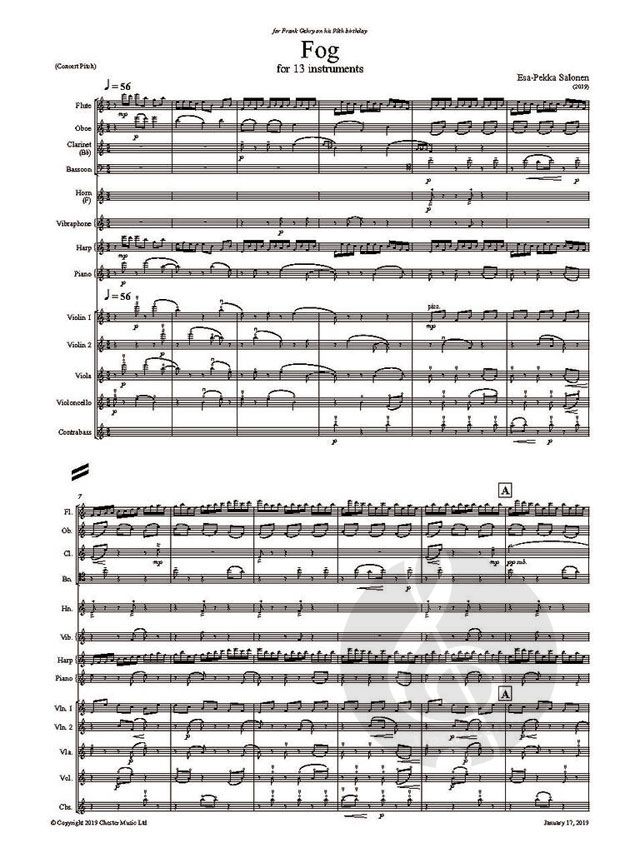 Salonens Fog, das er für seinen Freund und Architekten Frank Gehry geschrieben hat, ist eine Fantasie über das Bach'sche E-Dur-Präludium aus der Partita in E (BWV 1006), dessen harmonische und melodis...