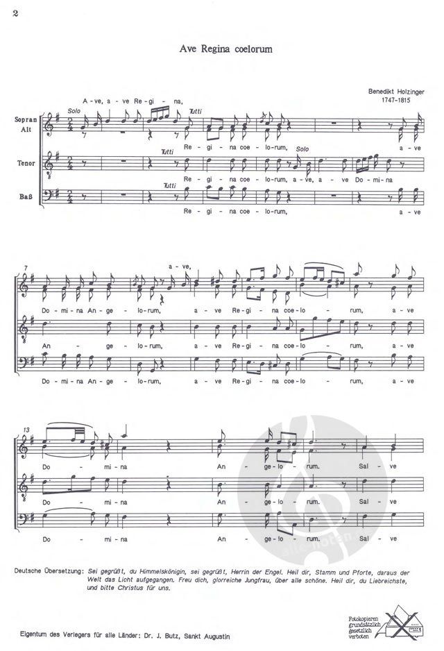 Für S-/Solo, SATB, Orchester (Hr I, II, Streicher) und Orgel oder mit Orgel allein.