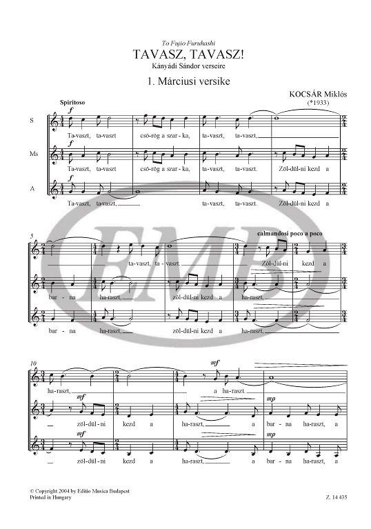 Commisioned by the municipality of Debrecen. T mea Dragony (b. 1976) started her studies in Ny regyháza as member of the Cantemus choir and graduated in composition at the Franz Liszt Academy of Music...