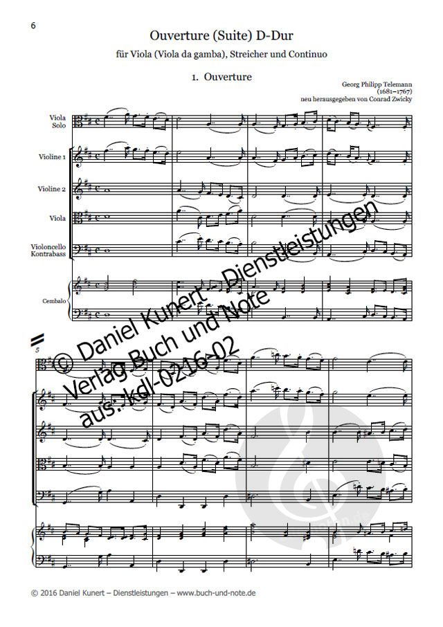 Bisher lag dies Werk in keiner heutigen Ansprüchen genügenden Ausgabe vor, daher entschied sich der Herausgeber zu einer Neu-Edition. Das Werk mit den Sätzen "Ouverture", "La Trompette", "Sarabande",...