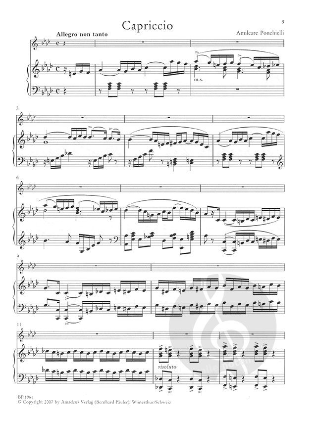 Ponchielli, der Schöpfer der Oper 'La Gioconda' schenkte mit dem Capriccio allen Oboisten ein Paradestück, das heute in Schule und Konzert unverzichtbar geworden ist.