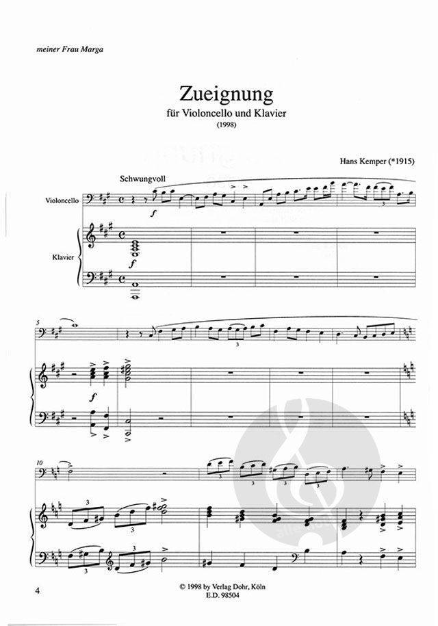Cello, Klavier; Partitur, Solostimme. Format: 10 S. Part. + 3 S. Stimme - 29,7 x 21 cm.