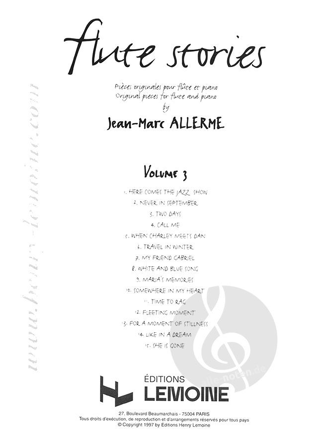 Original pieces for flute and piano from classical and jazzy style. CD included suggests a flute and piano version as well as a play along.