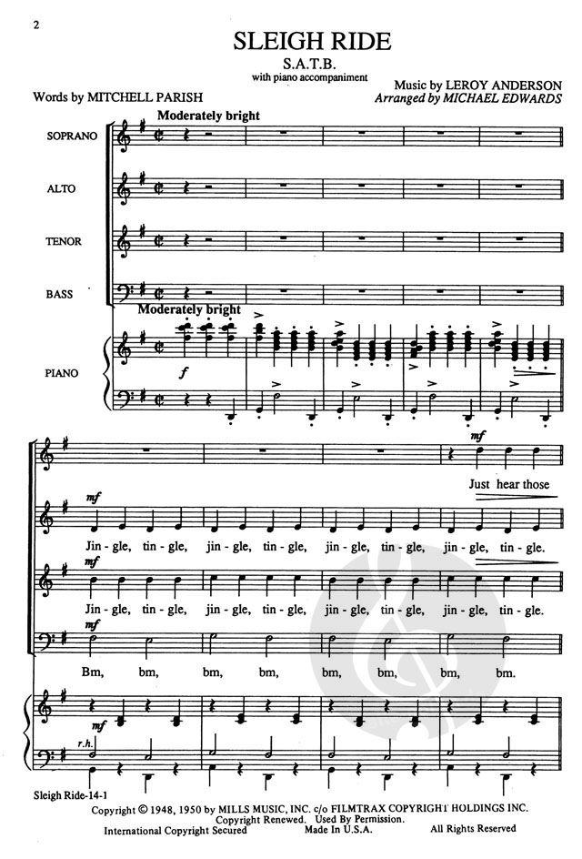 Leroy Anderson's classic orchestral work is now available for choirs! The mixed choir arrangements may be performed a cappella, with piano, or with opt. string bass and percussion. There is also a sup...