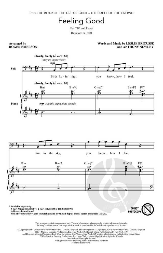 Leslie Bricusse Männerchor Noten finden Sie hier!