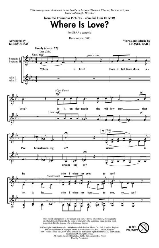Here is the tender love ballad from Oliver in a shimmering a cappella setting for women's voices. A gem! Duration: ca. 3:00.