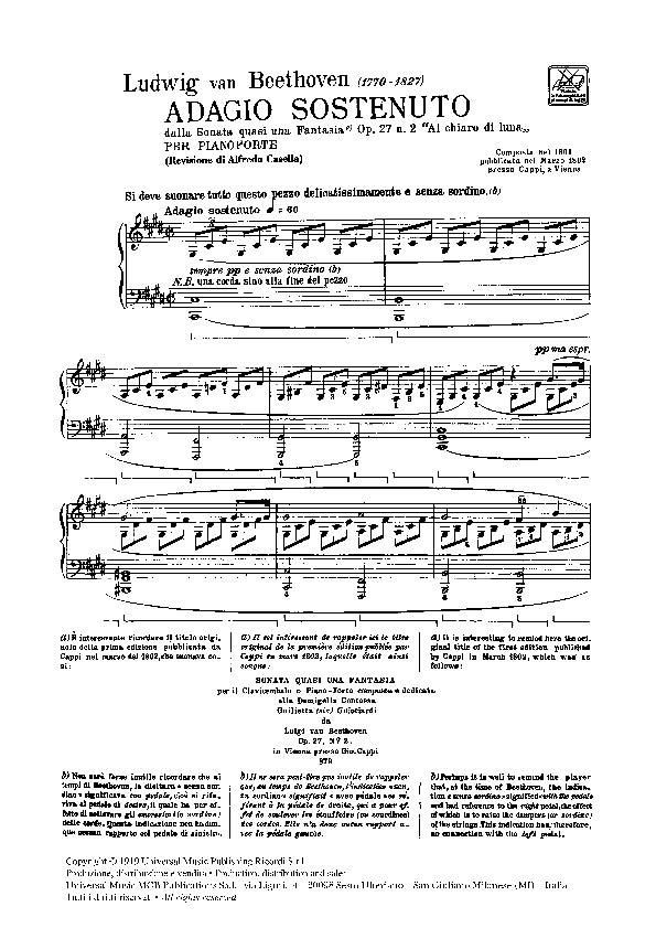 Beethoven's No. 6 from the Moonlight Sonta (First Movement) Op. 27, No. 2. Arranged for the piano.