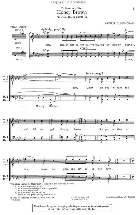 By Arthur Cunningham. Male chorus. For TTBB Choir. Choral. Piano/Vocal Score. 8 pages.