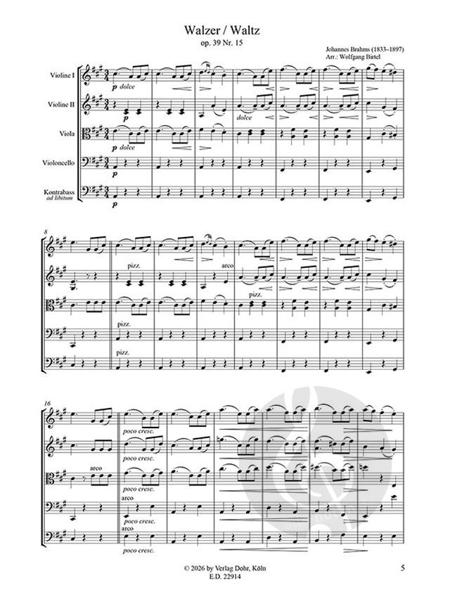 Reihe: Der Musikalische Salon Vol. 14. Streichquartett, Kontrabass ad lib.; Partitur, Stimme(n). Format: 4 S. Part. + 5 x 1 S. Stimmen - 29,7 cm x 21 cm.