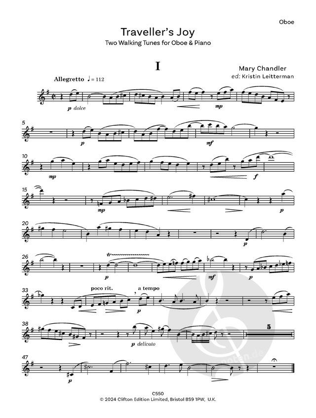 Traveller's Joy - Two Walking Tunes für Oboe und Klavier wurde 1956 komponiert. Dies ist das erste Mal, dass das Stück veröffentlicht wurde. Nr. 1 ist im ABRSM Woodwind Syllabus 2026 aufgeführt. Mary...