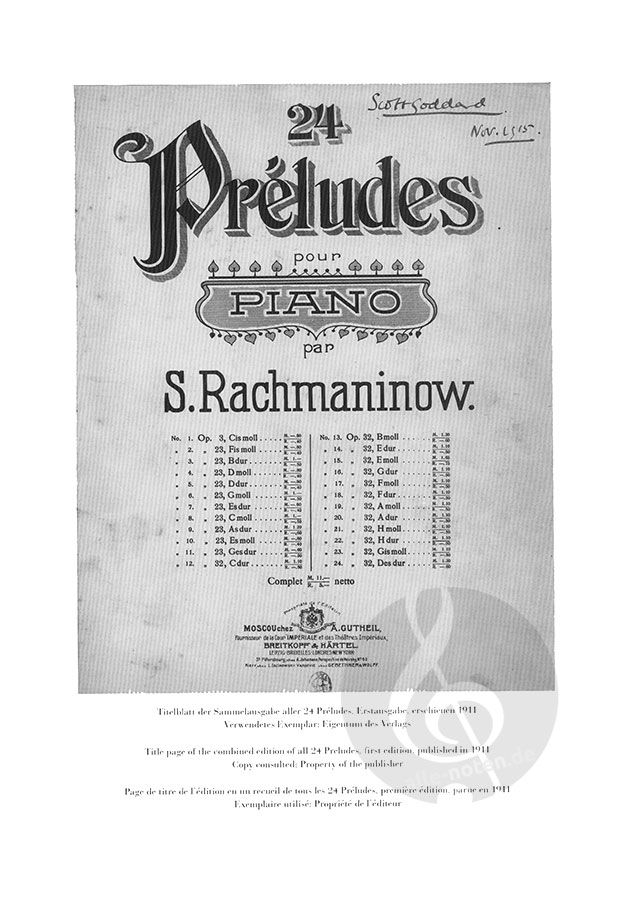 Ausgehend von dem schnell weltberühmt gewordenen Prélude cis-moll op. 3 Nr. 2, das bereits 1892 entstand, verfasste Rachmaninow bis 1910 zwei weitere Sammlungen von Préludes, die 1911 auch als Gesamtb...