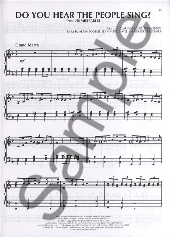 14 favorites from the Broadway sensation arranged for beginning pianists. Titles include: At the End of the Day - Bring Him Home - Castle on a Cloud - I Dreamed a Dream - In My Life - On My Own - Who...