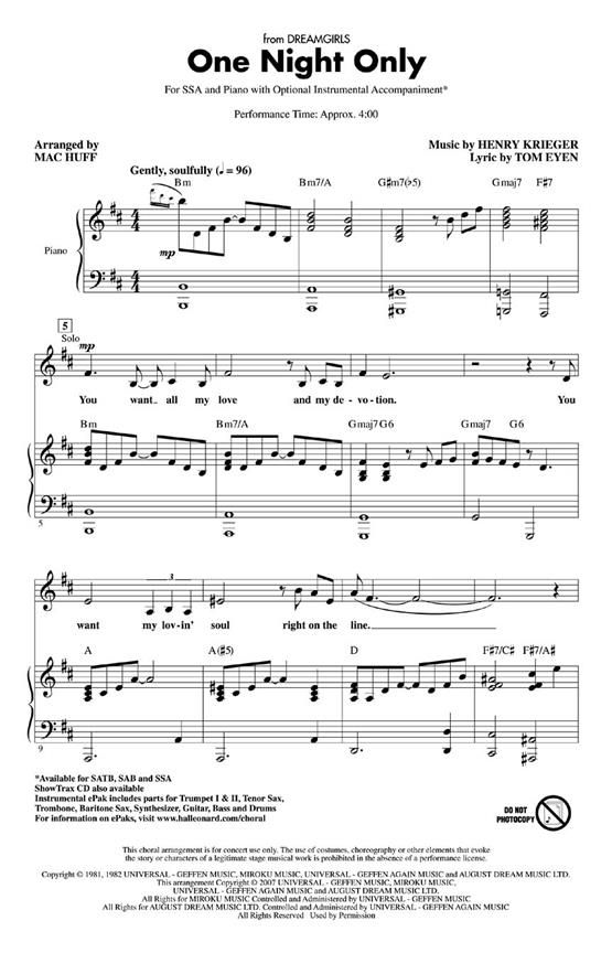 From the movie musical Dreamgirls, this arrangement begins as a slow and emotional ballad, then kicks into high gear for a fast powerful rendition. A fantastic concert opener! Performance Time: Approx...