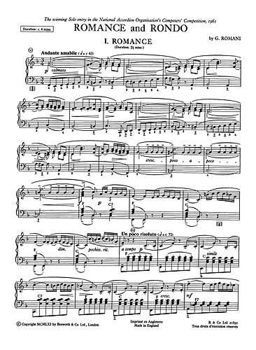Romance and Rondo is a two movement work for solo Accordion, approximately 4 minutes in length. It was written by Graham Romani in 1961 for the Solo Accordion section of the National...