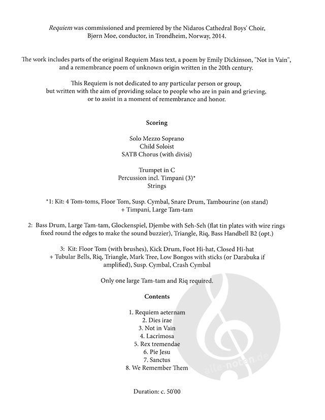 Bei Einzelabnahme ist die Partitur mit Kopierschutz versehen. Dieser entfällt nur bei gleichzeitiger Abnahme der Chorpartitur in Chorstärke bzw. des Orchestermaterials.