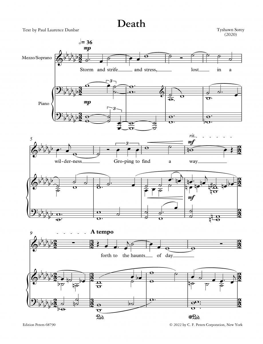 Death von Tyshawn Sorey entstand im Auftrag der L. A. Opera zur Uraufführung per Livestream im Februar 2021 mit der Mezzosopranistin Amanda Lynn Bottoms sowie Howard Watkins am Klavier. Die Textvorlag...