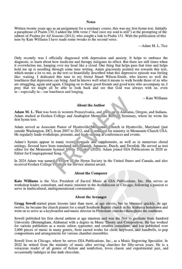 Donna Kasbohm hat die 21 Texte für den Orden der christlichen Initiation Erwachsener (OCIA) größtenteils für einstimmigen Gesang mit Diskant und Klavier- oder Orgelbegleitung mit einigen C-Instrumente...
