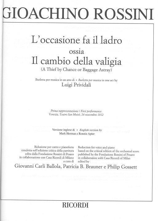 Ed. Critica G. Carli Ballola, P. B. Brauner, P. Gossett - Riduzione Per Canto E Pianoforte