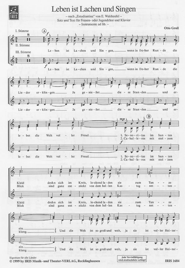 Walzer 'Estudiantina' für 3stg. Frauenchor und Klavier oder zus. mit Akk., Gitarre, Bass, Schlagwerk. Satz: Otto Groll