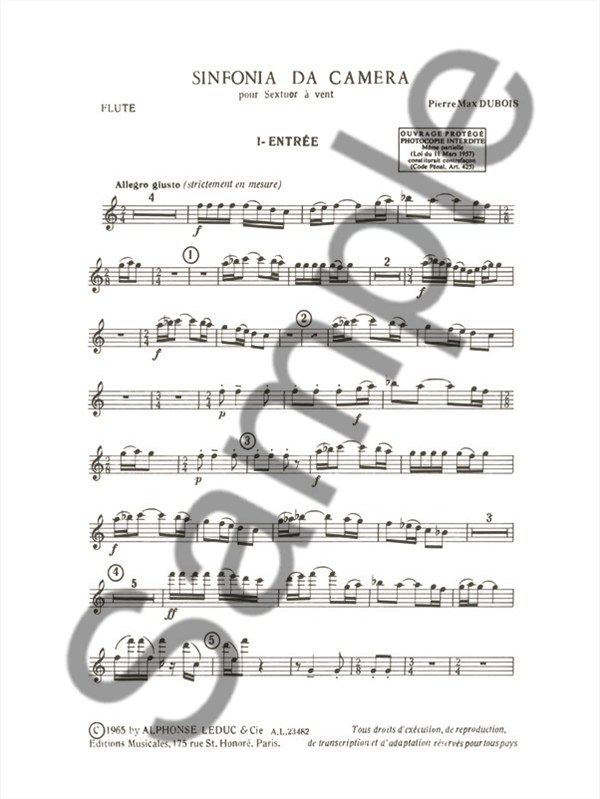 French composer, Pierre Max Dubois (1930-1995) significantly contributed to the wind repertoire. Sinfonia Da Camera for Wind Sextet was published in 1965 and remains prominent in the ensemblerepertoir...