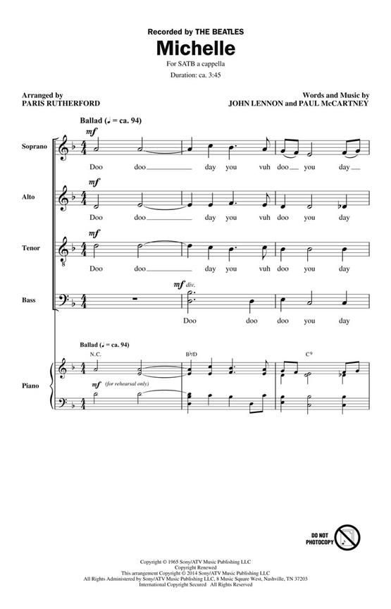 From 1965, this classic by the Beatles showcases the purity of a cappella voices highlighting the beauty and longing of this expressive song. The opening and closing are largely homophonic, with a qua...