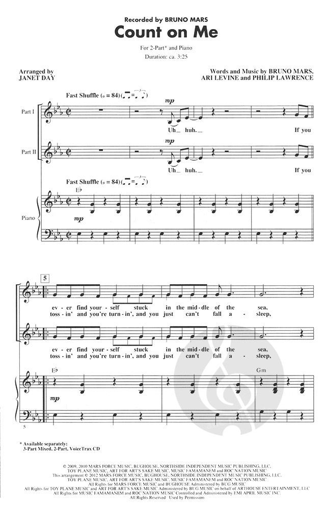 Discovery Level 1 Jüngere Chöre und ihre Zuhörer werden es lieben, Musik des unglaublich talentierten und beliebten Bruno Mars zu singen! Separat erhältlich: 3-stimmig gemischt, 2-stimmig, VoiceTrax C...