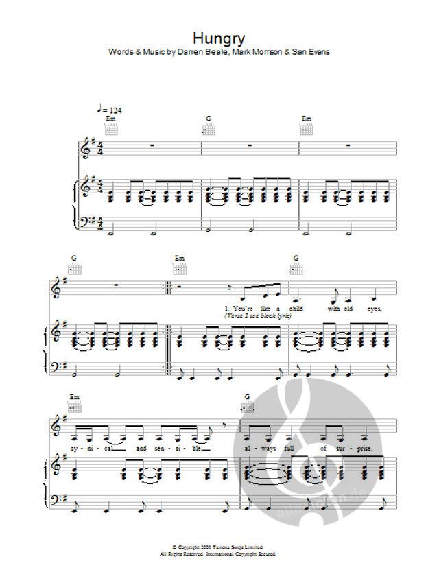 Pop-Noten für Klavier (rechte Hand Melodie), Gesang & Gitarre