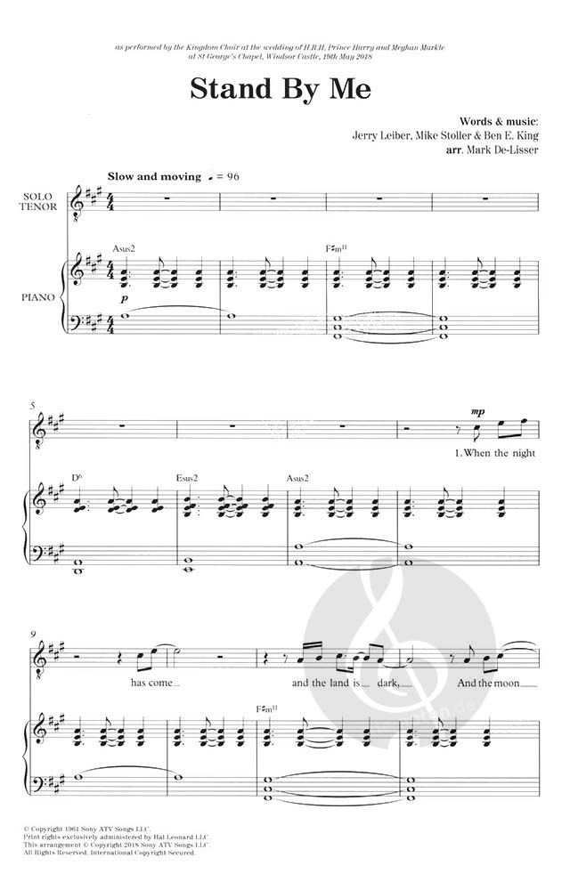Dieses Arrangement des zeitlosen Klassikers Stand By Me wurde im Gospel-Stil von Mark De-Lisser für die Hochzeit von S. R. H. Prinz Harry und Meghan Markle in der Kapelle von Schloss Windsor geschrieb...