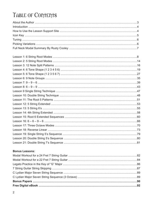 92 pages of intermediate to advanced level lessons on topics ranging from legato to 3-octave modes to arpeggios are included in this book, plus 2 DVDs with video lessons to complement the book.