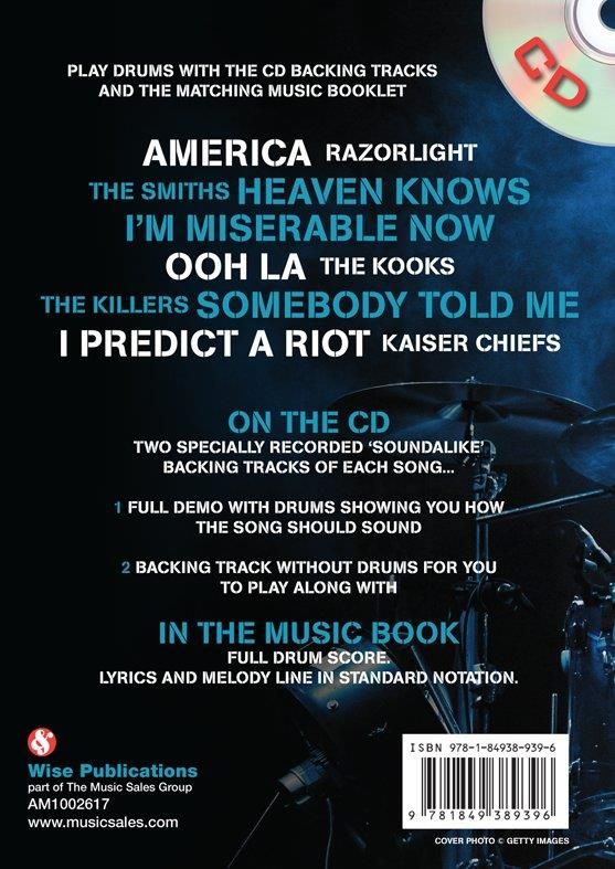 Play Drums with the CD backing tracks and the matching music booklet (DVD insert sized), included in the case. This pack includes five indie rock greats. On the CD: Two specially recorded 'soundalike...