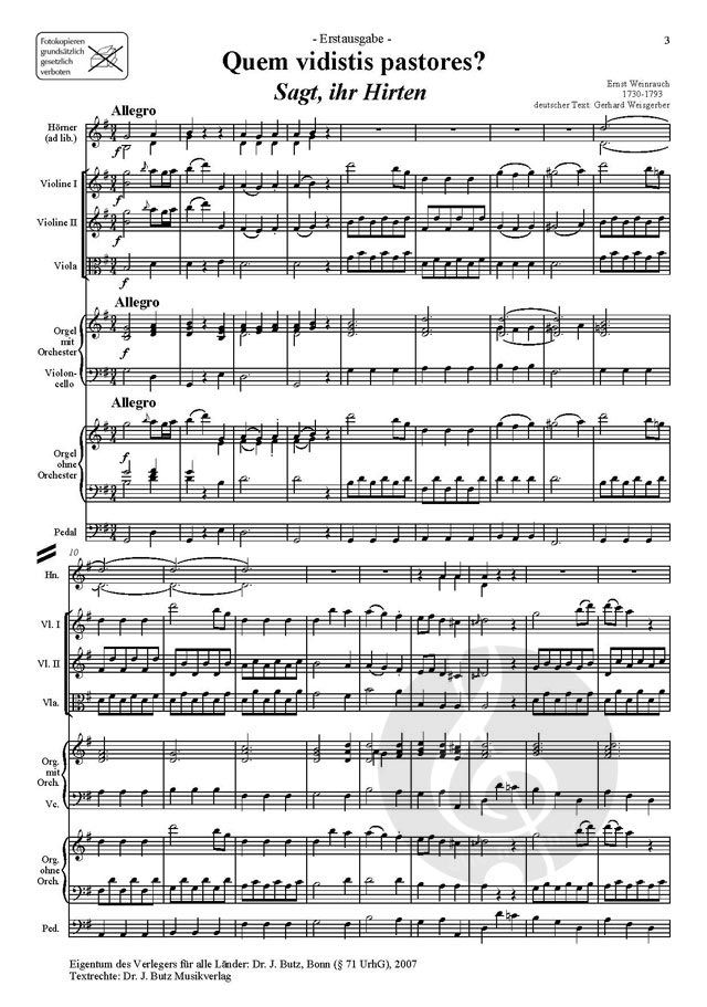 Bei Einzelabnahme ist die Partitur mit Kopierschutz versehen. Dieser entfällt nur bei gleichzeitiger Abnahme der Chorpartitur in Chorstärke bzw. des Orchestermaterials.
