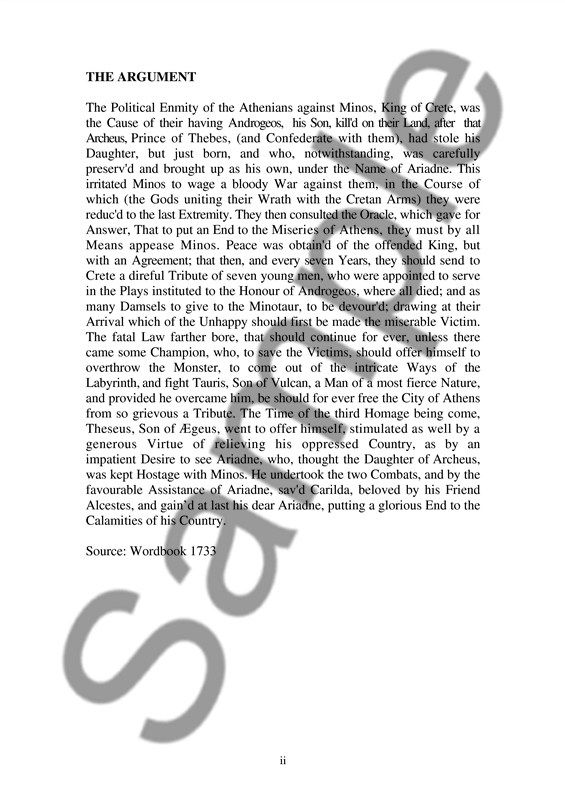 Full Score for the opera Arianna In Creta by G. F. Handel. Libretto prepared anonymously from Teseo in Creta by Pietro Pariati. Orchestra 2 Horns Traversa 2 Oboes Bassoon Strings Basso Continuo