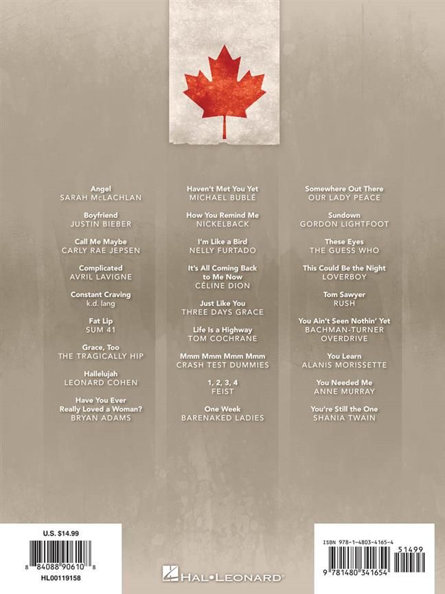 This collection features 27 songs from Canada's top artists, including Michael Buble, Celine Dion, Shania Twain, Justin Bieber, Carly Rae Jepsen and many more.
